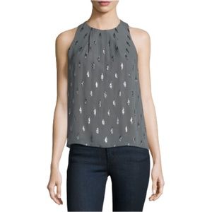 NWT Joie Kastra B Top Shirt Womens Small Gray Metallic Sleeveless Crew Neck NEW