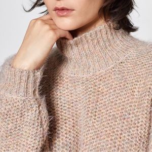 A funnel neck and balloon sleeves elevate a fabulously fuzzy, wool-kissed sweater that's what you'll want to warm up in.