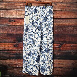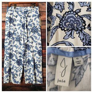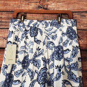 NWT Joie Pants Size 10 Linen Rayon Blend Cropped Wide Leg Floral Elastic Waist