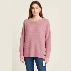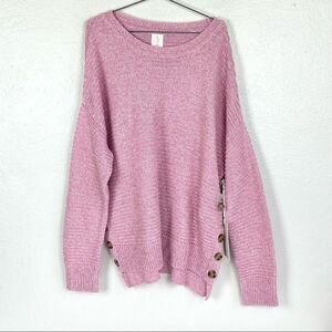 NWT Joie Pink Knit Side Button Sweater, long sleeve with a scoop neckline. Length of 24” and total bust measurement of 50” or 25" lying flat across the front.