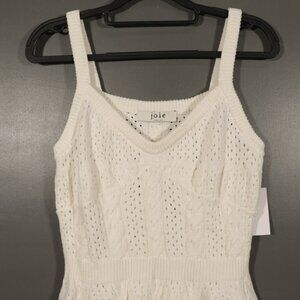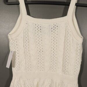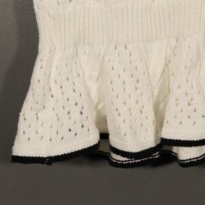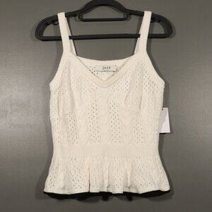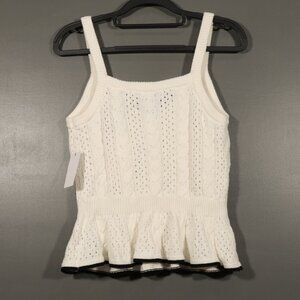 Contrast accentuates the flippy peplum of a sculpted cotton-blend sweater-cami that alternates cables with airy open stitching.