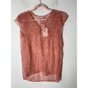NWT Joie Red White Print Sheer Flutter Sleeve Top Sz s Brand New in Excellent Condition