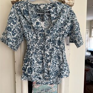 Elevate your style with this elegant floral blue top. Perfect for any occasion.