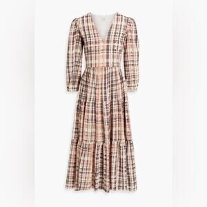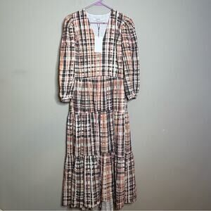 NWT Joie Tobey Peach Espresso Midi V-Neck 3/4 Sleeve Dress Size 6 Small
