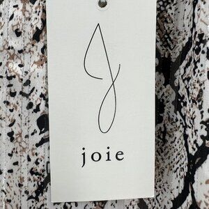 NWT Joie Women's Snake Print Tie Neck Long Sleeve Lined Shimmer Tan Blouse Sz XS
