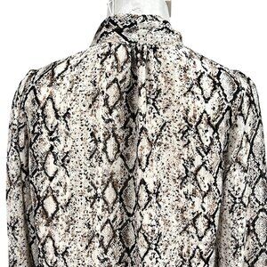 NWT Joie Women's Snake Print Tie Neck Long Sleeve Lined Shimmer Tan Blouse