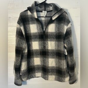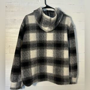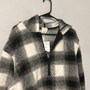 NWT Joie boxy plaid jacket/coat, women’s size small. Black and white, hoodie, 1/4 zip pullover. Longer hem in the back, super cute! Partial tags.