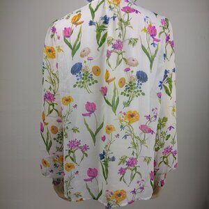 NWT Joie white floral layered V-Neck long sleeve blouse top ladies Large