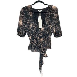 NWT- Joie 'Macie' Tonal-Floral Print Wrap-Style Top, Fuchsia - Size Small.