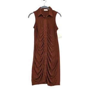 NWT Jolie & Joy Women's M Copper Slinky Ruched Button-Down Dress