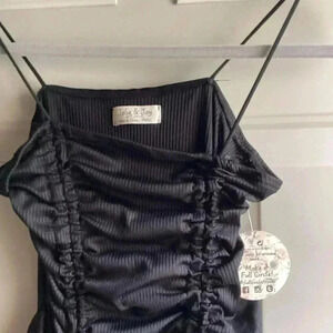 NWT Jolie&Joy Black Ruched Ruffle Mini Dress Size Small