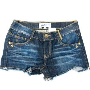 NWT Jolt Distressed Denim Jean Raw Edge Hem Jewel / Stud Accents Junior Size 5