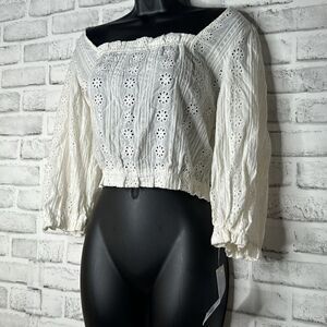 NWT Jolt Ivory Lantern Sleeve Blouse Crop Top Shirt Size Large