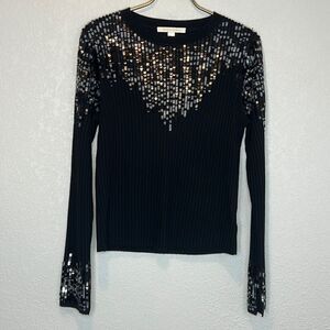 NWT Jonathan SIMKHAI Black Ribbed Sweater With Sequins Medium