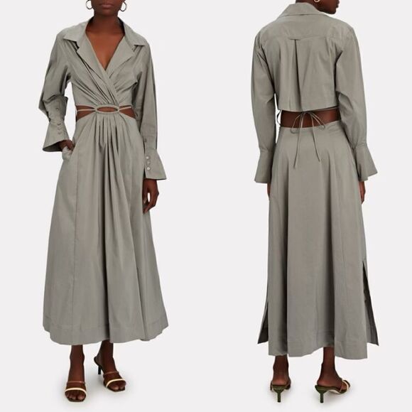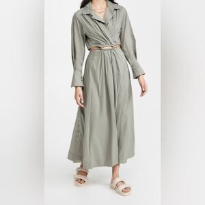 NWT Jonathan Simkhai Alex Midi Green Shirt Dress Poplin Cut Out Size XL