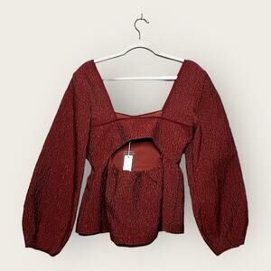 NWT | Jonathan Simkhai | Arya Matelasse Effect Peplum Blouse | Brick | Size 6