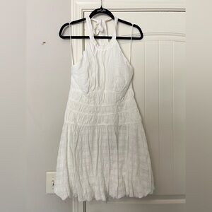 bride bridal rehearsal dinner bachelorette halter mini little white dress bubble halter