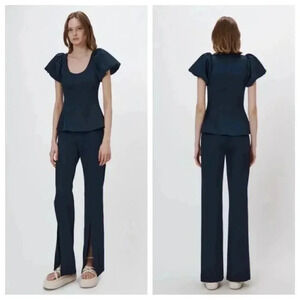 NWT Jonathan Simkhai Chase Front Slit Cotton-blend Pants Midnight size 6