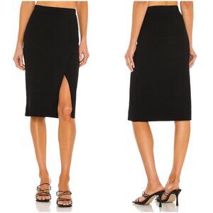 NWT Jonathan Simkhai Deep Rib Wrap Skirt black XS stretch slit