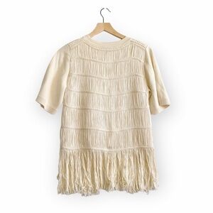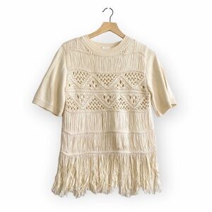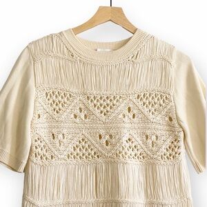 NWT Jonathan Simkhai Delphine Macrame Knit Sweater, Ivory, Size S