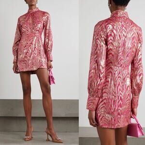 NWT Jonathan Simkhai Halen Ruched Metallic fil coupé silk-blend moire Mini Dress