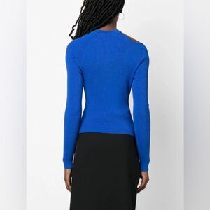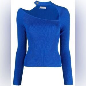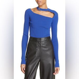 NWT Jonathan Simkhai Lysette Mock Neck Cutout Ribbed Knit Top in Cobalt size L