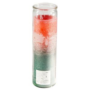 The candle measures 8" in height (top to bottom) and is ~2.25" in diameter.