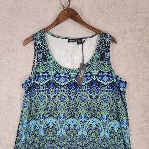 NWT Jones & Co Womens Sleeveless Printed Asymmetrical Dress 1X Rayon/Spandex