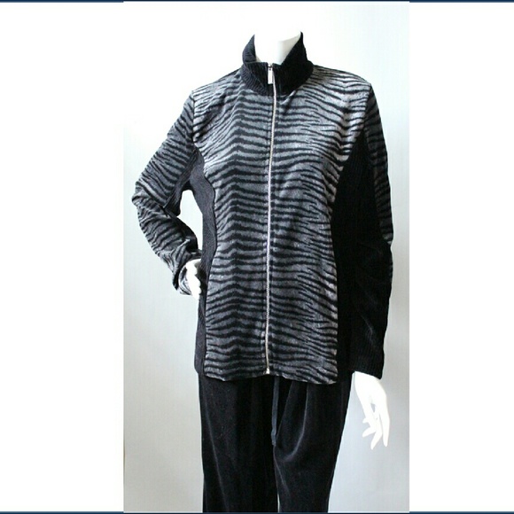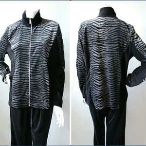 NWT Jones NY Black & Gray Velor Jacket sz XL.