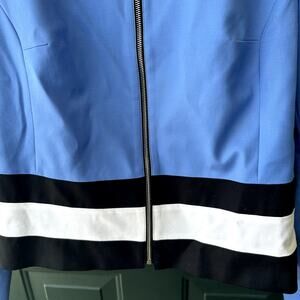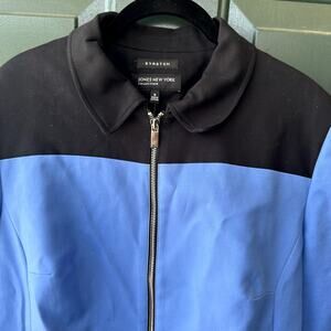 NWT Jones NY Collection Sz 16 Zip Front Blazer Jacket Blue Black Career Office