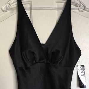 This is a NWT Jones New York Intimates Black Camisole. It has a layered V-Neck with adjustable spaghetti straps on the back side. This could be perfect for a night out on the town or a fun night in the club. The tag indicates that it was supposed to be two pieces, but only the camisole is included in this listing.