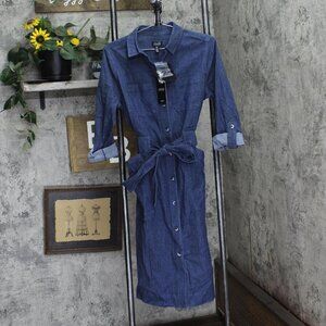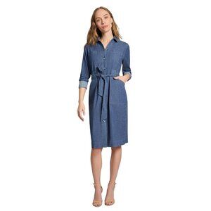 NWT Jones New York Pork Chop Pocket Tie Mini Dress 10928845 Dark Wash Blue M