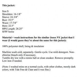 Material + wash instructions for my Jones NY jacket (they're basically the same jacket, so this info should be the same):