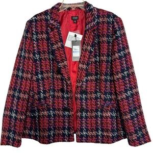 NWT Jones New York Red Black Blue & White Woven Plaid Open Jacket