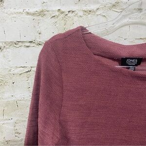 Jones New York Womens Medium Rose Pink 3/4 Sleeve Tie Hem Textured Top new with tags.