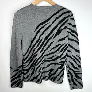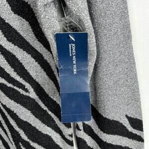 New with tags Jones New York Signature metallic silver with black zebra print zip up cardigan. Size large. $139 retail.