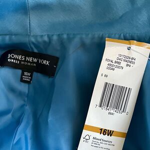 NWT Jones New York Size 16W Blue Pleated Shawl Collar A-Line Dress Event Formal