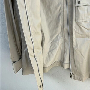 This stone colored utility jacket by Jones New York offers a stylish and practical option for transitional weather. Its lightweight design and straight fit make it a versatile addition to any wardrobe, perfect for casual occasions. Zipper Front with flap overlay that snaps. Brand New! Size 3X