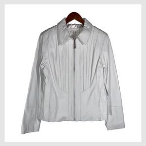 NWT Jones New York White Leather Jacket Women’s Size Large Zip Front Y2K