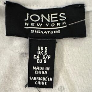 NWT Jones New York White and Black Polka Dot Short Sleeve Top w chambray hem S