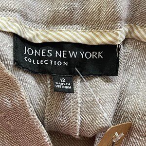 NWT Jones New York Wide Leg Linen Womens Pants sz 12 Gray Lagenlook Mid Rise