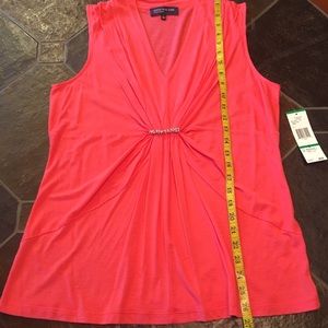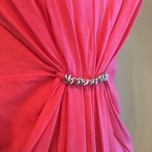 New with tags ($49.00). 26" in length from shoulder to bottom hemline. Has a great gathered detailing in the middle underneath the bust line that has an awesome slimming effect. The silver pieces in the middle are small metal rings. Please feel free to message me with any questions you may have & thanks for checking out my listing! :)