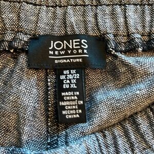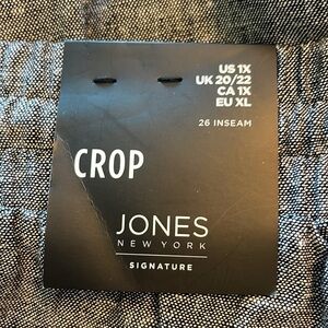 NWT - Jones New Yorkk Signature gray crop linen blend pull on -elastic waist with drawstring - large pockets with button closure - new with tags - size 1X