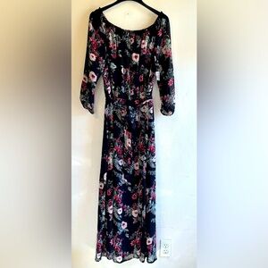 NWT Jones Studio Feminine floral maxi dress in black and pink shades- perfect for any dressy event. Sz 16