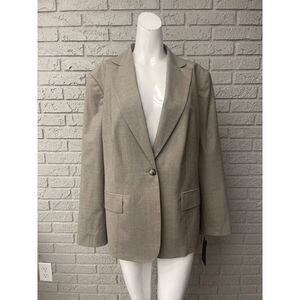 NWT Jones New York Collection Women Beige Stretch One Button Blazer Size 14