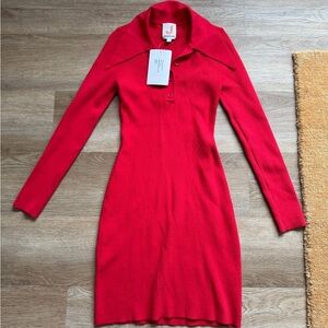 ❤️NWT Joostricot Scarlet Red Long Sleeve Mini Flared Polo Dress