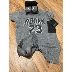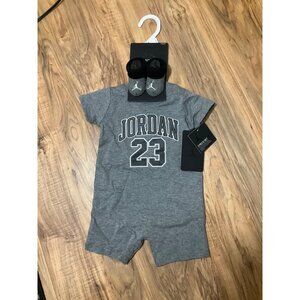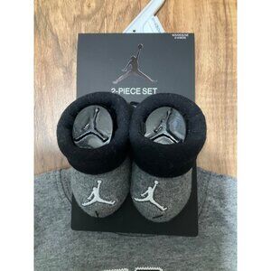 NWT Jordan Baby Boy Romper & Booties Set Gray, Black & White - 0-6 Months