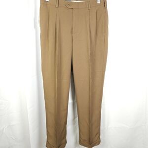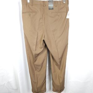NWT Jos A. Bank Mens 33x30 Tan Pleated Cuffed Water Stain Repellent Dress Pants