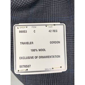 This Jos A Bank Gordon suit separates offers a sophisticated look with its black and blue houndstooth windowpane plaid pattern. Made from 100% wool, it ensures comfort and durability for formal settings.