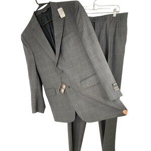 NWT Jos A Bank Travelers Gordon Black Plaid Wool Suit 42R / 37 RY10371 $695